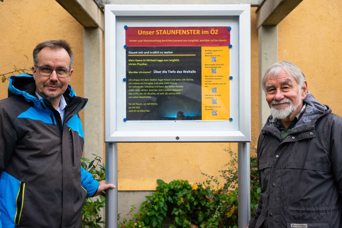 Über beigefügte QR-Codes können Vorübergehende noch mehr über den „Staunenden des Monats“ erfahren: worüber er oder sie in Lengfeld staunt, was die Person motiviert, ins ÖZ zu gehen, oder was ihr persönlich am christlichen Glauben wichtig ist. Außerdem gibt es mit den ÖZ-Leckerbissen ein paar Veranstaltungstipps.