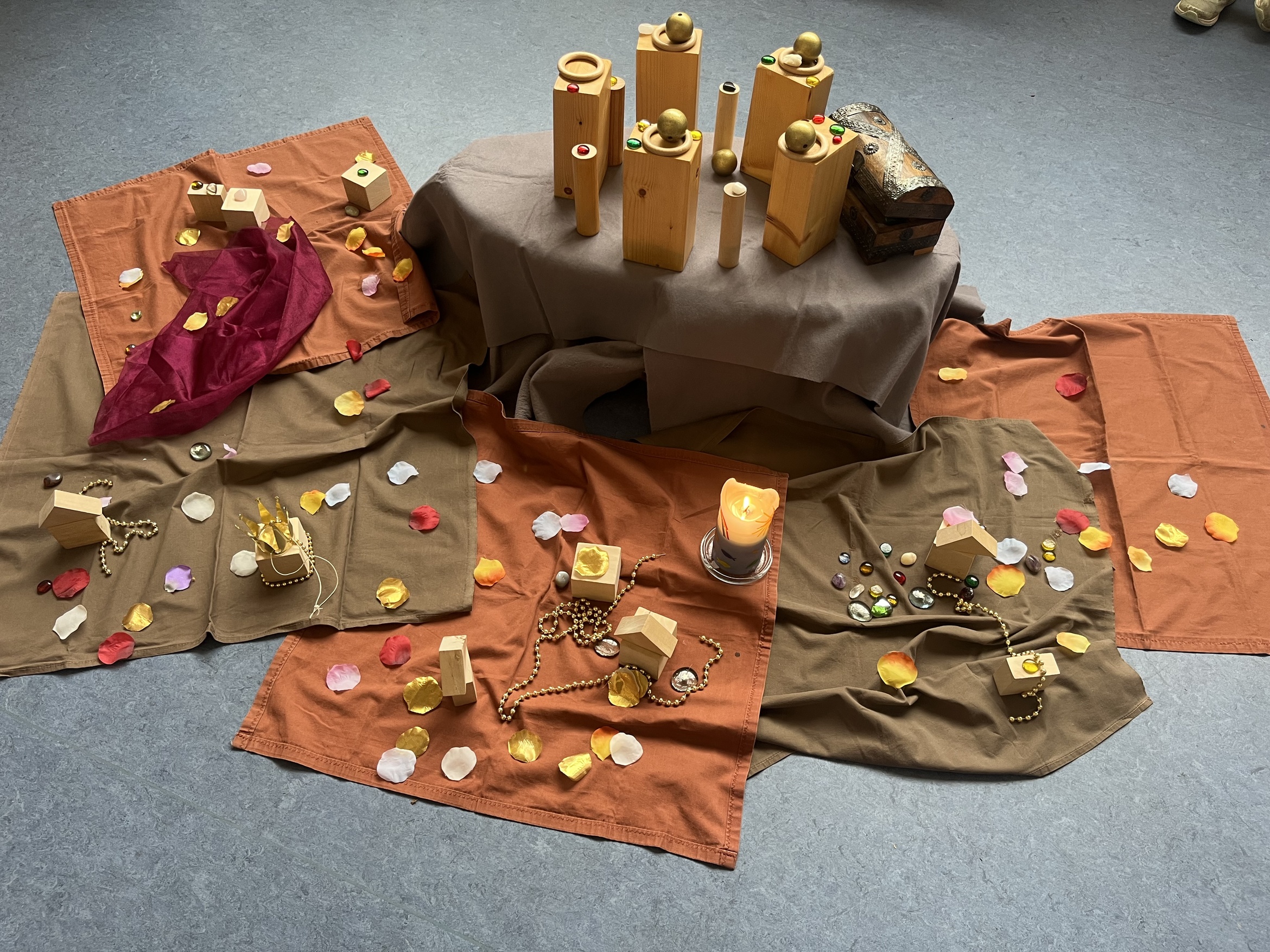 Am Sonntag, 2.11. feierten die Kleinsten im Pfarrzentrum ihren Gottesdienst zur hl. Elisabeth, die am 19.November ihren Namenstag feiert. Zunächst waren die Kinder gefordert, eine große Burg auf einem Berg aufzubauen. Sie wurde geschmückt mit kostbaren Kleidern, Perlen und Edelsteinen. Auf dieser Burg, der Wartburg, war Elisabeth zu Hause.
