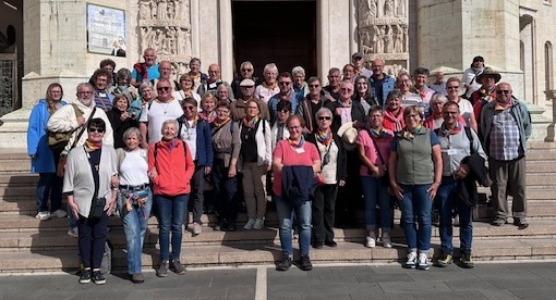 Nach einer Zwischenübernachtung in Garda, stand auf dem Weg nach Assisi der Besuch der Klosteranlage „Eremo Montecasale“, ein Ort franziskanischer Spiritualität, auf dem Programm. In Assisi wurde die Gruppe an die verschiedensten Orte geführt, die mit Franz von Assisi in Verbindung gebracht werden. Natürlich durfte ein Besuch am Grab von Carlo Acutis, der vor kurzem heilig gesprochen wurde, nicht fehlen. Bruder Thomas führte die Wallfahrer durch die Basilika San Francesco und erklärte sehr eindrücklich die Fresken der Hauptkirche.